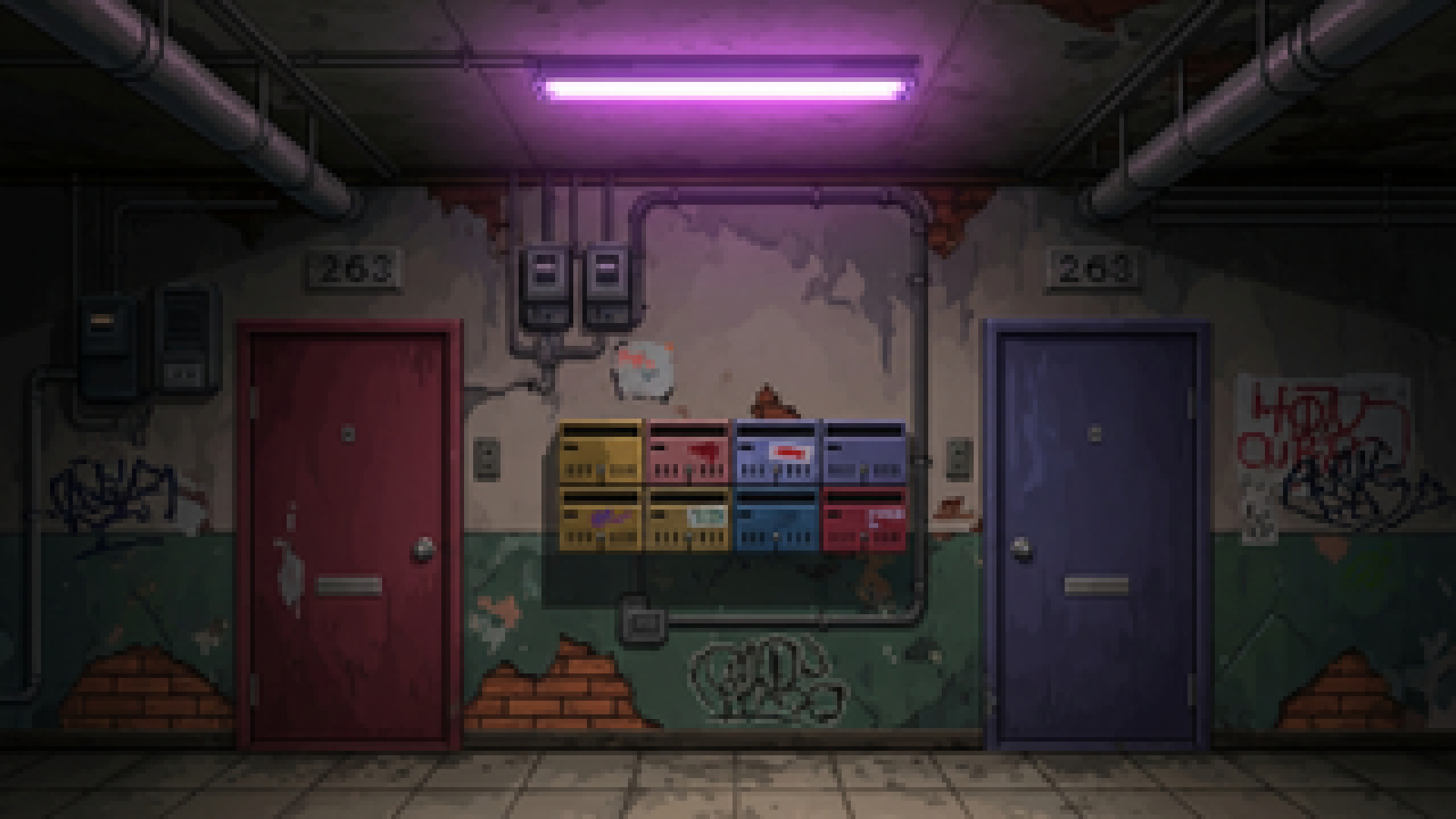 | 3 | BG-03 アパート廊下 | pan right (4秒) | 6体並びテスト① |